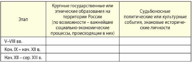 Кратко заполните в тетради таблицу «Этапы российской истории» (см. главу 5).