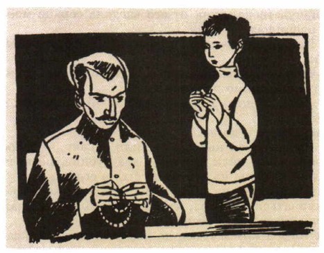 Мы сразу по его голосу поняли, до чего это был фальшивый и никудышный подвиг, потому что, если бы Гераклу понадобилось совершить тринадцать подвигов, он бы сам их совершил, а раз он остановился на двенадцати, значит, так оно и надо было и нечего было лезть со своими поправками. — Геракл совершил свои подвиги, как храбрец. А этот молодой человек совершил свой подвиг из трусости...— Харлампий Диогенович задумался и прибавил: — Мы сейчас узнаем, во имя чего он совершил свой подвиг... Щёлк! На этот раз только одна бусина упала с правой стороны на левую. Он её резко подтолкнул пальцем. Она как-то нехорошо упала. Лучше бы упали две, как раньше, чем одна такая. Я почувствовал, что в воздухе запахло какой-то опасностью. Как будто не бусина щёлкнула, а захлопнулся маленький капканчик в руках Харлампия Диогеновича. — ...Мне кажется, я догадываюсь, —проговорил он и посмотрел на меня. Я почувствовал, как от его взгляда сердце моё с размаху влепилось в спину. — Прошу вас, — сказал он и жестом пригласил меня к доске. — Меня? — переспросил я, чувствуя, что голос мой подымается прямо из живота. — Да, именно вас, бесстрашный малярик, — сказал он. Я поплёлся к доске. — Расскажите, как вы решили задачу, — спросил он спокойно, и — щёлк, щёлк! — две бусины перекатились с правой стороны на левую. Я был в его руках. Класс смотрел на меня и ждал. Он ждал, что я буду проваливаться, и хотел, чтобы я проваливался как можно медленнее и интересней. Я смотрел краем глаза на доску, пытаясь по записанным действиям восстановить причину этих действий, но ничего сообразить не мог. Тогда я стал сердито стирать с доски, как будто написанное Шуриком путало меня и мешало сосредоточиться. Я ещё надеялся, что вот-вот прозвенит звонок — и казнь придётся отменить. Но звонок не звенел, а бесконечно стирать с доски было невозможно. Я положил тряпку, чтобы раньше времени не делаться смешным. — Мы вас слушаем, — сказал Харлампий Диогенович, не глядя на меня. — Артиллерийский снаряд... — сказал я бодро в ликующей тишине класса и замолк. — Дальше, — проговорил Харлампий Диогенович, вежливо выждав. — Артиллерийский снаряд, — повторил я упрямо, надеясь по инерции этих правильных слов пробиться к другим таким же правильным словам. Но что-то крепко держало меня на привязи, которая натягивалась, как только я произносил эти слова. <<< К началу 3 Продолжение 5 >>>