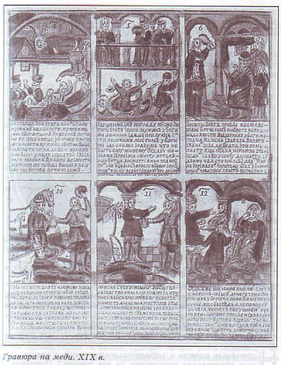 Древнерусская литература Повесть Шемякин суд (окончание)Брат же богатый дал ему на свою лошадь пять рублей, чтобы ему и без хвоста отдал. Он же взял у брата своего пять рублей и отдал ему лошадь. Тогда стал убогий просить у попа по судейскому указу попадью. Поп же начал ему бить челом, чтобы у него попадьи не брал. Он же взял у попа десять рублей.