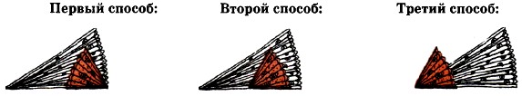 2. а) Сложи из бумаги веер. разверни его так, чтобы получился самый большой из возможных углов. б) Таня и Оля стали спорить, чей веер образует больший угол. Они наложили один веер на другой разными способами.