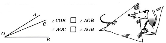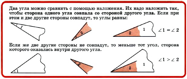 3. Вырежь из бумаги два произвольных угла. Определи с помощью наложения, какой из них больше, а какой меньше. 4. Сравни углы: