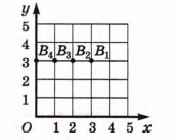 2. а) Запиши координаты точек В1, В2, В3, В4. Что ты замечаешь? B1( ; ), В2( ; ), В3( ; ), В4( ; ). б) Отметь цветным карандашом произвольную точку В, принадлежащую оси ординат. В чем особенность координат этой точки? Закончи предложение: