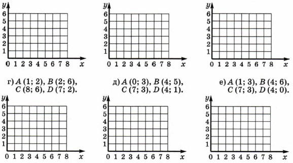 Часть 3. Урок 17 Точки на осях координат1. Построй четырехугольник ABCD по координатам его вершин. Если возможно, проведи его оси симметрии. Проверь с помощью кальки.