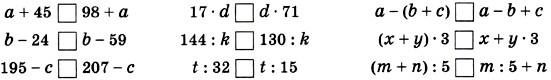 а) В котором часу автобус выехал из Москвы и когда вернулся обратно? б) Определи скорость его движения на всех участках пути. в) Сколько времени пробыли туристы в Покрове? Во Владимире? В Ногинске? г) Сколько времени затратил автобус на путь от Владимира до Ногинска? Сколько времени он затратил на весь обратный путь? д) На каком расстоянии от Москвы и на каком расстоянии от Покрова был автобус в 12 ч? В 18 ч 30 мин? е) В котором часу он находился на расстоянии 40 км от Москвы? 5. Построй график движения по рассказу “Путешествие в Тверь”: В выходной день отец и сын решили поехать в гости к друзьям в Тверь. Они сели в автобус, который выехал из Химок в 10 часов утра со скоростью 50 км/ч. Через 2 ч пути автобус сделал остановку на 30 мин, а затем продолжил путь со скоростью 60 км/ч. Через 1 ч после остановки автобус прибыл в Тверь, где отца и сына встречали их друзья. Ответь по графику на вопросы: 1) Какое расстояние от Химок до Твери? 2) В котором часу автобус прибыл в Тверь? 3) На каком расстоянии от Химок и от Твери автобус находился в 12 ч дня? 6. Выполни действия и сравни полученные результаты. Что ты замечаешь? 1011 • 26 1134 : 21 9500 : 19 1011 • 206 10 584 : 21 9500 : 190 1011 • 2006 105 084 : 21 9500:1900 7. а) Как изменится сумма, если первое слагаемое увеличить на 12, а второе уменьшить на 8? б) Как изменится разность, если уменьшаемое уменьшить на 3, а вычитаемое увеличить на 5? в) Как изменится произведение, если первый множитель увеличить в 6 раз, а второй уменьшить в 3 раза? г) Как изменится частное, если делимое увеличить в 8 раз, а делитель уменьшить в 4 раза? 8. Сравни выражения