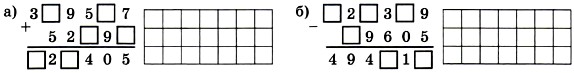 14. Основанием прямоугольного параллелепипеда служит квадрат со стороной 13 см. Найди высоту параллелепипеда, если его объем 1352 см3. 15. Вставь в “окошки” пропущенные цифры и сделай проверку: