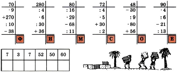 Почему в первых двух случаях число оказалось больше своей части, а в двух других — меньше? Расположи ответы примеров в порядке убывания, и ты узнаешь название столицы Египта во втором тысячелетии до нашей эры.