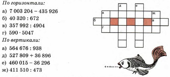 13. После того как Буратино решил несколько примеров, ему осталось решить в 3 раза больше, чем он решил. Сколько всего примеров надо было решить Буратино, если ему осталось решить d примеров? Составь выражение и найди его значение при d = 6. Придумай задачу про другие величины, которая решается так же. 14. “Числовой кроссворд”. Реши примеры и запиши их в соответствующие клетки кроссворда.
