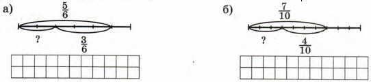 Как с помощью этой полоски проиллюстрировать пример на вычитание: б) Проанализируй решение примера и выведи правило вычитания дробей.
