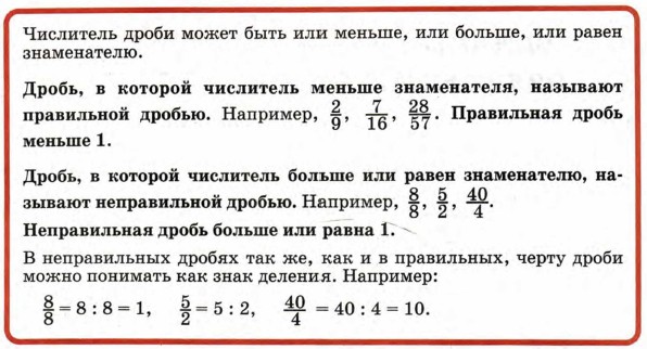 Назови дроби: а) меньшие 1; б) большие 1; в) равные 1.