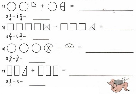 Часть 2. Урок 11 Сложение и вычитание смешанных чисел1. Выполни действия с фигурами и запиши равенства:
