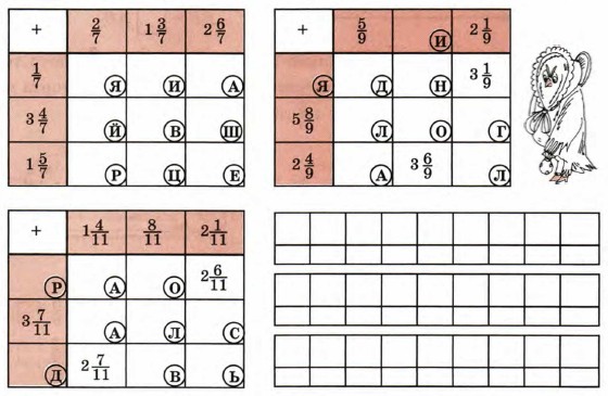 4. Заполни пустые клетки таблиц и расположи полученные числа в порядке убывания, сопоставив их соответствующим буквам. Что означают расшифрованные слова?