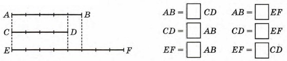 7. Какую часть каждый из отрезков АВ, CD и EF составляет от другого отрезка? Сделай записи и найди правильные и неправильные части.