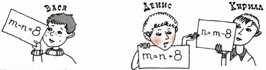 8. Известно, что m на 8 больше, чем n. Вася, Денис и Кирилл записали это так: