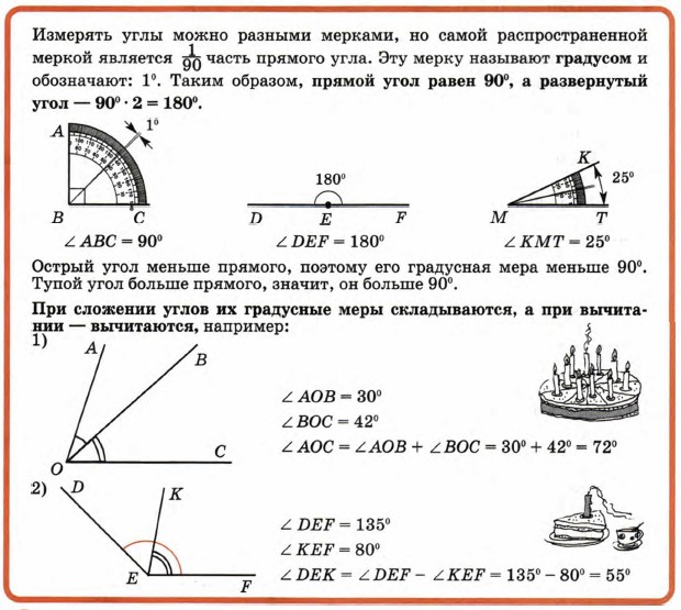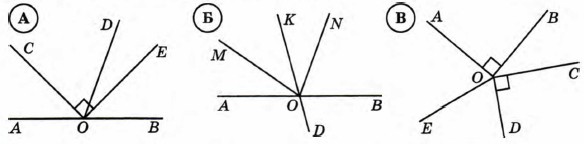 3. Нарисуй какой-нибудь угол: а) равный 90°; б) больший 90°; в) меньший 90°; г) равный 180°. Как называются эти углы? 4. Выполни программу действий для рисунков А, Б и В: 1. Запиши, сколько на рисунке углов: — меньших 90°; — равных 90°; — больших 90°, но меньших 180°; — равных 180°. 2. Из полученных цифр составь наименьшее и наибольшее возможное число. 3. Найди произведение составленных чисел.