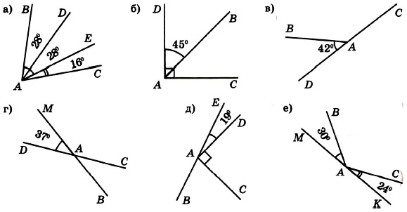 5. Раскрась на каждом рисунке угол ВАС и найди его величену: