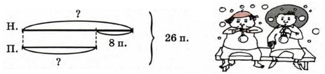 7. Незнайка и Пончик стали пускать мыльные пузыри. Вместе они пустили 26 пузырей, причем у Незнайки получилось на 8 пузырей больше, чем у Пончика. Сколько пузырей получилось у Незнайки, а сколько — у Пончика?