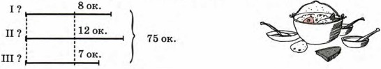 Составь и реши аналогичную задачу про друзей Незнайки. 8. Трое рыбаков поймали 75 окуней и стали варить уху. Когда один рыбак дал на уху 8 окуней, другой — 12, а третий — 7, то окуней у них осталось поровну. Сколько окуней поймал каждый рыбак?
