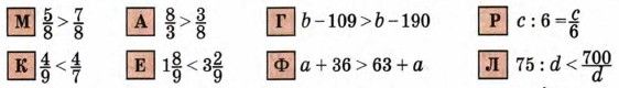 8. Найди истинные высказывания (c, d ∈ N). Из соответствующих им букв составь имя одного из самых известных героев греческих мифов.