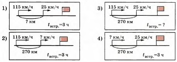 б) Как найти время до встречи с помощью вычислений? Докажи. в) Запиши формулу зависимости между величинами s, υ1, υ2 и tвстр., где: