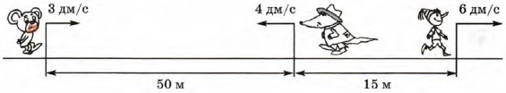5. Какое расстояние будет через 10 с между Геной и Геной и Буратино, Чебурашкой и Буратино?