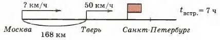 б) Составь и реши задачи, обратные данной. 6. Реши задачу двумя способами. Какой из этих способов рациональнее? Из Москвы и Твери в Санкт-Петербург по одному и тому же шоссе выехали одновременно 2 машины: из Москвы — легковая, а из Твери — грузовая. Скорость грузовой машины 50 км/ч. Какова скорость легковой машины, если она догнала грузовую через 7 ч после выезда, а расстояние от Москвы до Твери 168 км?