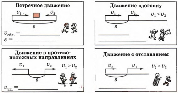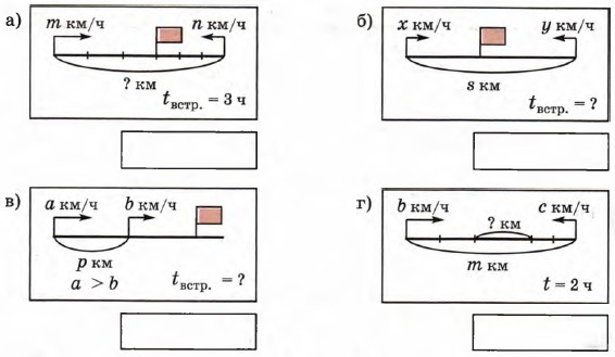 Часть 2 Формула одновременного движения. Урок 341. Найди скорость сближения или скорость удаления. В каких случаях произойдет встреча? Запиши для этих случаев формулу одновременного движения.