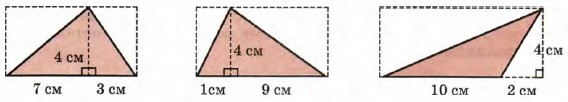 б) Пользуясь полученной формулой, вычисли площади закрашенных треугольников. Что ты замечаешь?