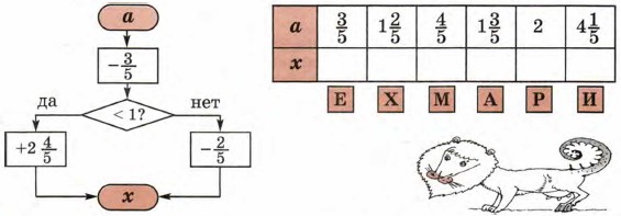 16. Используя заданный алгоритм, найди значения X, сопоставь их со- ответствующим буквам и расположи ответы примеров в порядке убывания. Ты узнаешь название мифического чудовища в древнегреческой мифологии, имеющего голову льва, туловище козы и хвост дракона.
