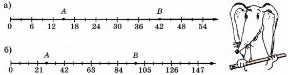 11. Найди цену деления шкалы координатного луча и координаты точек А и В. Чему равно расстояние АВ, выраженное в единичных отрезках?