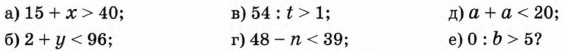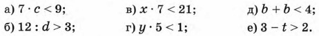 5. Имеются ли среди чисел 6, 9, 12, 30, 72 решения неравенства: а) 8 • b - 7 > 90; б) d : 3 + 9 < 12? 6. Найди два решения неравенства: