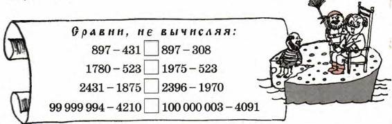 6. Контейнер с грузом весит 3219 кг, а пустой контейнер — 237 кг. Докажи, что груз весит больше 2900 кг, но меньше, чем 3100 кг. 7. Игра “Головоломки Стивенса”. Жители острова Рокфор имели обычай казнить всех чужеземцев. Исключение составляли лишь те, кто справлялся с головоломками Стивенса — мудрейшего жителя этого острова. Попробуй решить одну из них.