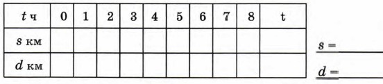 б) Пусть s км — расстояние, пройденное велосипедистом, a d км — его расстояние до Москвы. Заполни таблицу и запиши формулы, выражающие зависимость величин s и d от времени t. Какие значения может принимать в этих формулах переменная t?