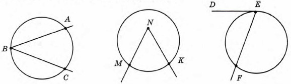 4. Построй угол, составляющий: а) 5. Построй угол, если известно, что: а) 6. Чем отличается расположение вершин и сторон углов ABC, MNK и DEF относительно соответствующих окружностей?