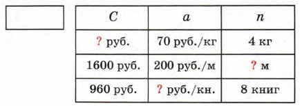 9. Запиши формулу стоимости и заполни пустые клетки таблицы: