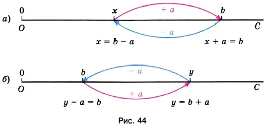 Чтобы найти неизвестное слагаемое, надо из суммы вычесть известное слагаемое (рис. 44, а).