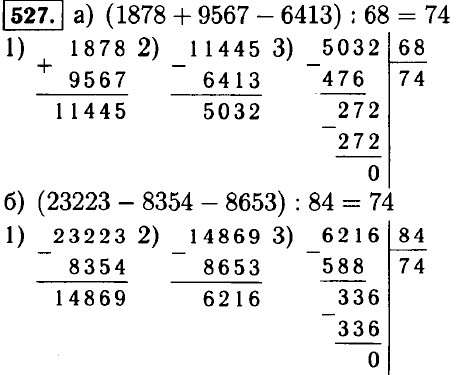 513. 1) 203 • 26 - (3292 + 2579) : 57 = 5278 - 5871 : 57 = 5278 - 103 = 5175;