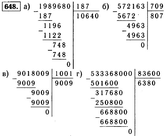 § 3. Умножение и деление натуральных чисел Порядок выполнения действий. Домашние работы. Математика 5 класс640. За 30 дней комплекс получит привес 750 х х 800 • 30 = 600 000 • 30 = 18 000 000 г = 180 00 кг = 18 т. 641. Пусть вместимость маленького бидона — х л, тогда большого — 4х л. В двух больших и пяти маленьких бидонах содержится 2 • 4х + 5х л молока. Составим и решим уравнение: 2 • 4х + 5х = 130 ⇒ 13x = 130 ⇒ х = 10 л. 642. Через 4 с между хозяином и собакой будет 450 - 15 • 4 = 450 - 60 = 390 м, через 10 с 450 - 15 • 10 = 450 - 150 = 300 м, через t с — (450 - 15t) м. 643. 1) Пусть у Николая х орехов, тогда у Михаила 2х орехов, у Пети 3x орехов. Всего у мальчиков (х + 2х + 3х) орехов. Составим и решим уравнение: х + 2х + 3x = 72 ⇒ 6x = 72 ⇒ x = 72 : 6 = 12 орехов у Николая, тогда у Михаила 2 • 12 = 24 ореха, а у Пети 3 • 12 = 36 орехов.