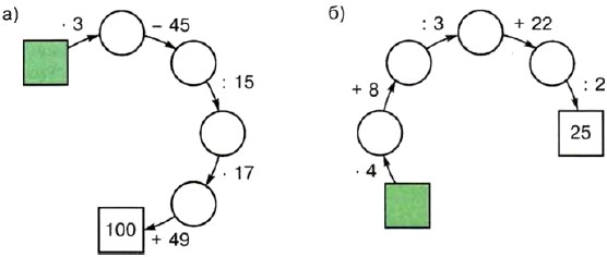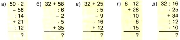 691. Попробуйте найти число, квадрат которого оканчивается цифрой 0; 6; 5; 7. Какой цифрой может оканчиваться квадрат числа? куб числа? 692. Машина двигалась 4 ч со скоростью а км/ч и 3 ч со скоростью b км/ч. Какой путь прошла машина за эти 7 часов? Составьте выражение для решения задачи и найдите его значение при: а = 40, b = 30; а = 30,b= 40; а = 60, b = 70. 693. Найдите значение выражения: а) 32 + 42; в) (92 - 42) : (9 - 4);