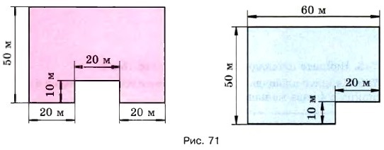 758. На рисунке 71 изображены два огорода. На каждый ар нужно 4 кг удобрений. Сколько удобрений потребуется на каждый участок? На оба участка?