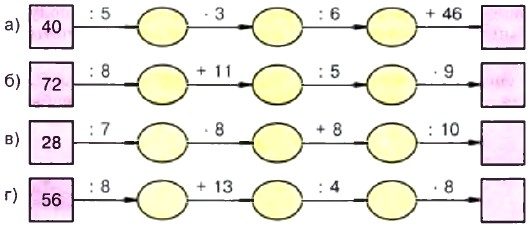 55. Вычислите устно, используя приём округления: а) 97 + 49; б) 398 + 435; в) 237 + 48. 56. Какое число надо вписать в последнюю клетку цепочки?