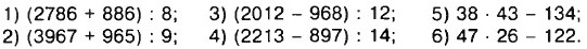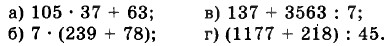 57. Подумайте, какие математические знания вам могут потребоваться, если вы собрались пойти: а) в бассейн; б) в магазин. 58. Какие двузначные числа можно записать с помощью цифр: а) 6 и 0; б) 1, 5 и 0; в) 3 и 5? 59. Сколько трёхзначных чисел можно составить из цифр 3, 5, 7, если в записи числа цифры не будут повторяться? Какое из этих чисел наибольшее и какое наименьшее? 60. Длина Волги 3530 км. Днепр на 1330 км короче Волги, а Урал длиннее Днепра на 228 км. Какова длина реки Урал? На сколько километров Волга длиннее Урала? 61. Лыжник за 5 ч прошёл 75 км. Сколько времени ему потребуется, чтобы с той же скоростью пройти 60 км? 62. Автобус шёл 2 ч со скоростью 45 км/ч и 3 ч со скоростью 60 км/ч. Какой путь прошёл автобус за эти 5 ч? 63. Решите задачу: 1) Мотоциклист едет со скоростью 95 км/ч, а скорость велосипедиста на 76 км/ч меньше. Во сколько раз скорость мотоциклиста больше скорости велосипедиста? 2) Скорость теплохода 45 км/ч, а скорость электровоза на 90 км/ч больше. Во сколько раз скорость теплохода меньше скорости электровоза? 64. Выполните действия: