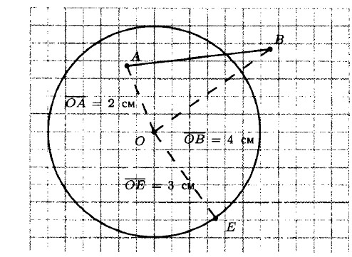 853. ОА = 2 см < ОЕ = 3 см; ОB = 4 см > ОЕ = 3 см.