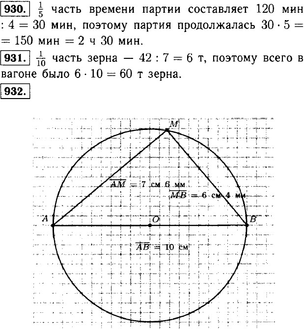 937. Мотоциклист и велосипедист встретятся через 272 : (12 + 56) = 272 : 68 = 4 часа. 938. SABCD = АВ • AD = 8 • 4 = 32 см2; SABC = SABCD : 2 = 30 : 2 = 16 см2; SACD = SABC = 16 см2, SABO = SABCD : 4 = 32 : 4 = 8 см2, SBCO = SABCD : 4 = 32 : 4 = 8 см2. 939. У продавца осталось 80 - (10 + 6 • а) = 70 - 6а кг яблок. В полученном выражении а может принимать натуральные значения от 0 до 11.