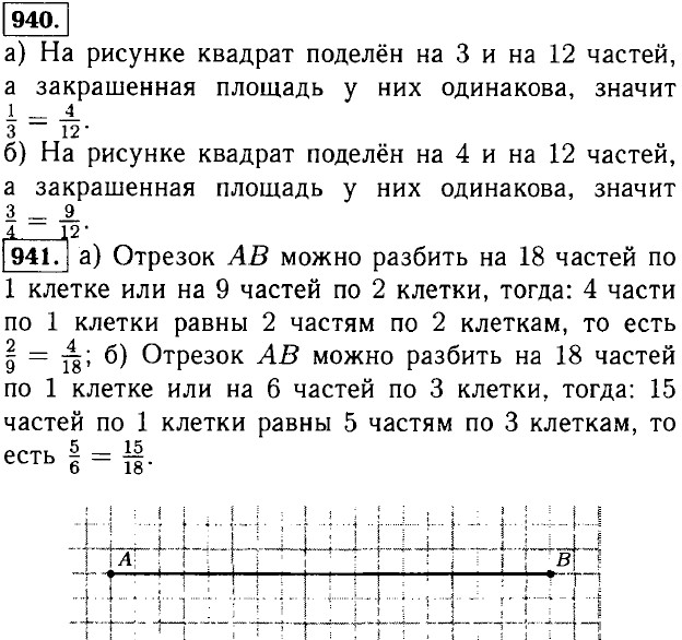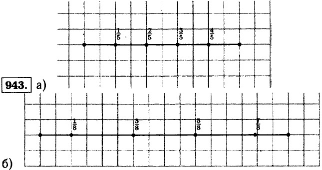 942. Отрезок можно поделить на 12 частей по одной клетке или на 6 частей по 2 клетки. Из рисунка видно, что 5 частей по 2 клетки равняется 10 частям пр 1 клетки.