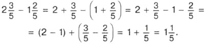 Если при вычитании смешанных чисел дробная часть уменьшаемого меньше дробной части вычитаемого, поступают так: