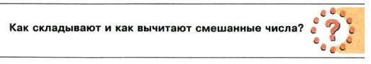 § 5. Обыкновенные дроби 29. Сложение и вычитание смешанных чиселСложение и вычитание смешанных чисел выполняется на основе свойств этих действий. Задача 1. На столе лежали Р е ш е н и е. Чтобы решить задачу, надо сложить числа Так как