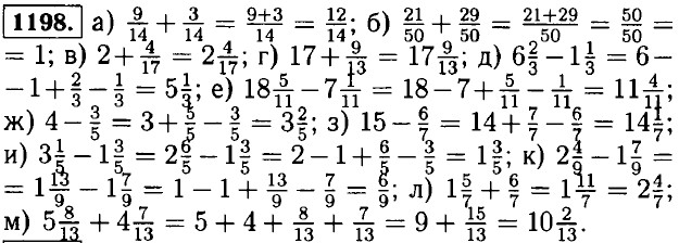 § 6. Десятичные дроби. Сложение и вычитание десятичных дробей Сравнение десятичных дробей. Домашние работы (окончание)1194. Весы слева показывают 250 г = 0,25 кг. Весы справа показывают 550 г = 0,55 кг. 1195. 7206 : 100 = 72,06; 61 : 1000 = 0,061; 7 : 100 = 0,07; 1849 : 1000 = 1,849. 1196. 1) скорость теплохода равна 21 + 4 = 25 км/ч. 2) скорость лодки равна 14 - 3 = 11 км/ч. 1197. 5089 = 5000 + 80 + 9, 6 781802 = 6 000 000 + 700 000 + 80 000 + 1000 + 800 + 2, 8000 = 8000 + 0, 98 000 560 - 90 000 000 + 8 000 000 + 500 + 60.