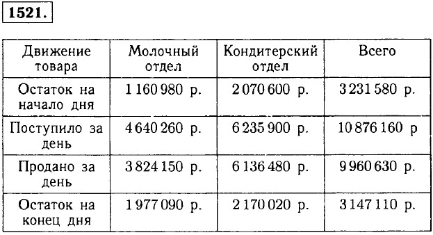 1522. 1) (7 - 5,38) • 2,5 = 1,62 • 2,5 = 4,05; 2) (8 - 6,46) • 1,5 = 1,54 • 1,5 = 2,31. 1523. 102 = 1 • 2 = 2, 1002 = 1 • 22 = 4, 1012 = 1 • 22 + 1 = 5, 1102 = 1 • 22 + 1 • 2 = 6, 11102 = 1 • 23 + 1 • 22 + 1 • 2 = 14, 1 = 12, 2 = 102, 3 = 112, 4 = 1002, 5 - 1012, 6 = ИОг, 7 = 1112, 8 = 10002, 9 = 10012, 10 = 10102, 11 = 10112, 12 = 11002, 13 = 11012, 14 = 11102, 15 = 11112. 1525. (51 + 52 + 59 + 50 + 49 + 50 + 51 + 52 + 50 + 50) : 10 = 54 : 10 = 50,4 см. 1526. Средняя скорость движения автомашины (53,5 • 3 + 62,3 • 2 + 48,2 • 4) : (3 + 2 + 4) = (160,5 + 124,6 + 192,8) : 9 = 477,9 : 9 = 53,1 км/ч. 1527. Средняя скорость движения туриста равна (1,2 • 3,8 • 3600 + 0,9 • 0,2 • 3600) : (3,8 + 2,2) = (16 416 + 7128) : 6 = 23544 : 6 = 3924 м/ч = 3,924 км/ч. 1528. Среднее арифметическое (х + 5,4) : 2 = 4,6 ⇒ х = 4,6 • 2 - 5,4 = 3,8. 1529. Составим и решим уравнение: (х + (х + 1,4)) : 2 = 4,4 ⇒ 2х + 1,4 = 4,4 • 2 = 8,8 х = (8,8 - 1,4) : 2 = 3,7 — одно число, а другое число 3,7 + 1,4 = 5,1. 1530. Пусть третье число равно х, тогда первое число равно 2,5х, а второе число равно 1,5х. Составим и решим уравнение: (2,5х + 1,5х + х) : 3 = 6 ⇒ 5х = 6 • 3 = 18 ⇒ х = 18 : 5 = 3,6 — третье число, 2,5 - 3,6 = 9 — первое число, 1,5 - 3,6 = 5,4 — второе число. 1531. Длина полосы, вспаханная трактористом, равна 4,9 га : 1,75 м = 49000 м2 : 1,75 м = 28000 м = 28 км. Следовательно, скорость движения трактора равна 28 : 7 = 4 км/ч. 1532. Для приготовления салата потребуется (27000 : 150) • 30 = 180 • 30 = 5400 г = 5,4 кг сметаны. 1533. За 4 года прирост массы растений составит 117 млрд, т • 4 = 468 млрд, т, что заменяет 468 млрд, т : 3 = 156 млрд, т нефти. 1534. а) 3,4x + 5,7x + 6,6x - 4,7x = (3,4х + 6,6x) + (5,7x - 4,7x) = 10x + х = 11х; при х = 3,6; 11х = 11 • 3,6 = 39,6; при х = 0,8; 11х = 11 • 0,8 = 8,8; при х = 10; 11х = 1М0 = 110;