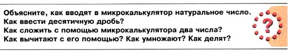 1537. Введите в микрокалькулятор числа: 20 000; 45 897; 3,9045; 0,000761. После введения каждого числа не забывайте сбрасывать предыдущее число. 1538. Выполните с помощью микрокалькулятора действия: а) 39,614 + 89,213; 560,98 + 1039,71; 0,0876 + 0,0876; 0,0876 + 0,91469; 24 714 395 + 39 623 008;