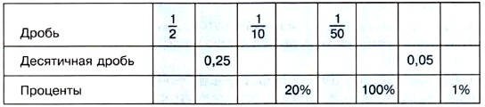 1561. Запишите в виде десятичной дроби: 1%; 6%; 45%; 123%; 2,5%; 0,4%. 1562. Запишите в процентах десятичные дроби: 0,87; 0,07; 1,45; 0,035; 2,672; 0,907. 1563. Запишите обыкновенные дроби 1564. Заполните таблицу: